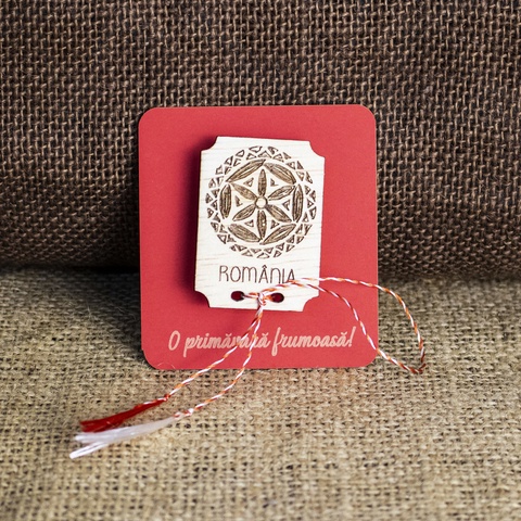 Martisor din lemn, gravat, cu inspiratie din folclorul romanesc