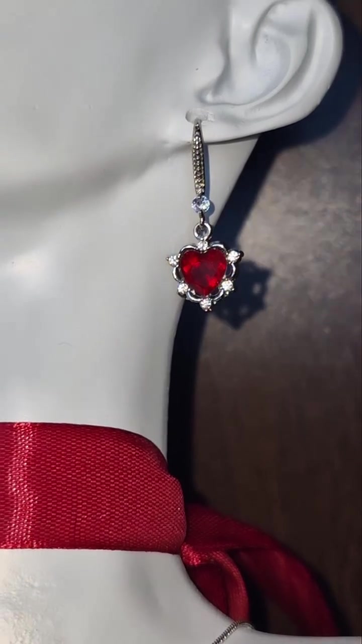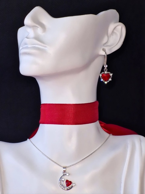 Set argint 925 cu semilună și inimi roșii