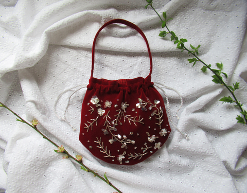 genți și portofele, genți de mână și umăr, genți de mână, geanta, brodat, broderie, paiete, rosu, catifea, manual, mic, demana, geantamana, margele, alb, unic, frumos, deosebit