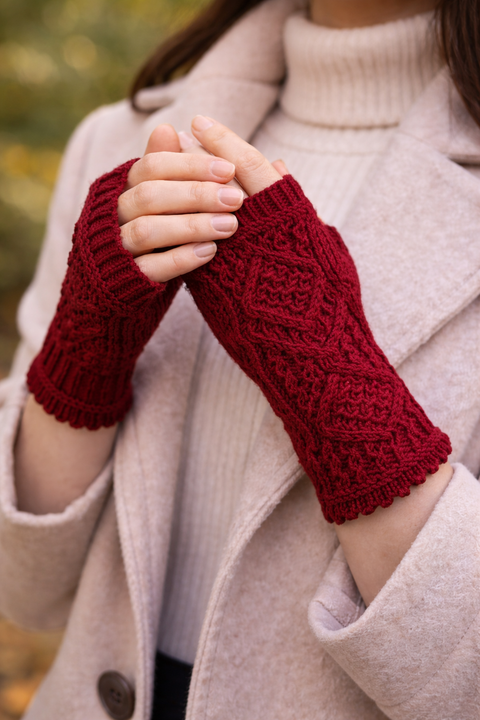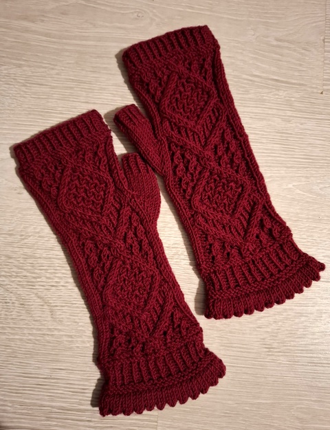 Mănuși lungi fără degete tricotate manual din fir cu lână