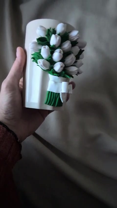 Pahar ceramic decorat manual cu buchet de lalele - personalizabil