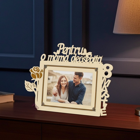 Rama foto de birou,Cadou Mama,8 martie,Lemn Natur
