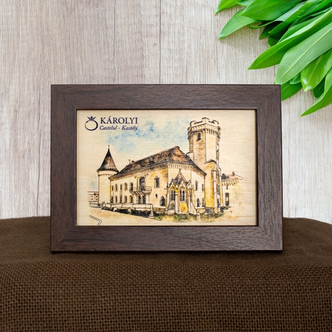 Tablou suvenir din lemn, Acuarela, Castelul Karolyi Carei, dimensiune 10/15, rama inclusa