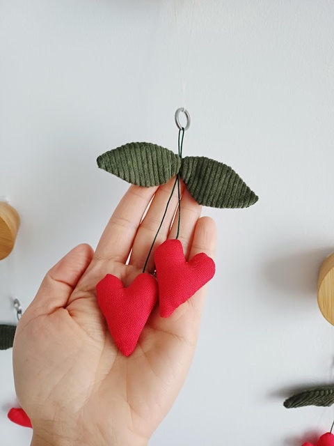 Breloc inimioare handmade din material textil - charm pentru poșetă sau rucsac