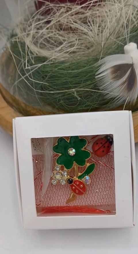 Mărțișor floare trifoi cu buburuză – simbol al primăverii, norocului și bucuriei