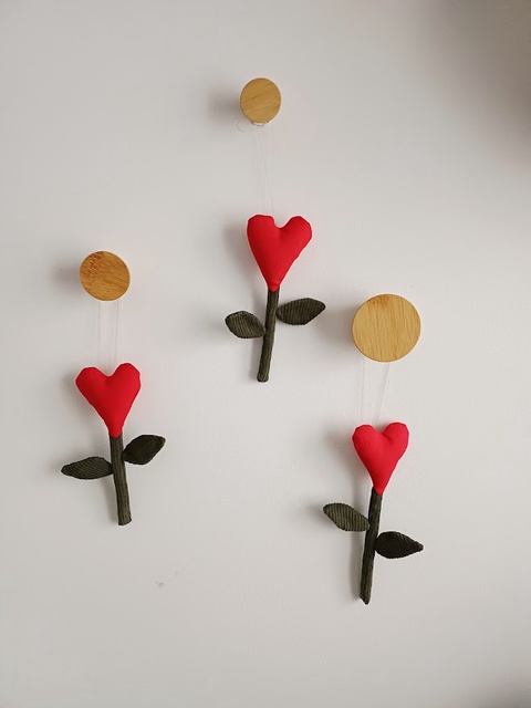 Floare decorativă handmade cu inimă, din material textil
