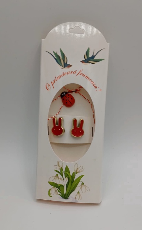 Butoni de cămașă 1 pereche tip mărțișor – iepuras la bubu rosii cu buburuză ,se poarta tot anul