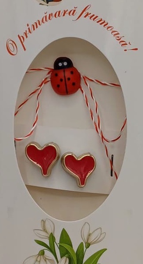 Butoni de cămașă 1 pereche ,tip mărțișor – inimioare rosii cu buburuză,care se poarta tot anul