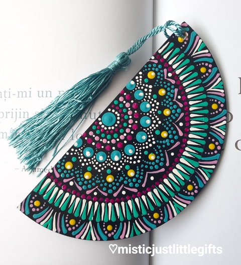 Semn de carte personalizabil, pictat manual in tehnica mandala dots