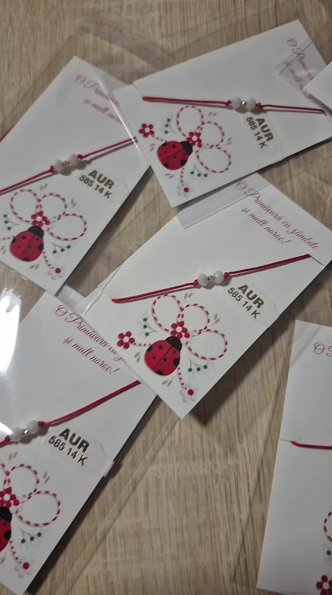 - Material: bila aur, snur rosu/negru, cristale roșii, cristale negre