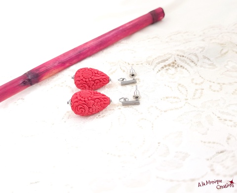 Cercei cu cinabru si jad alb
