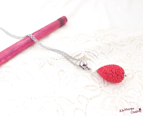 Colier cu cinabru si jad alb