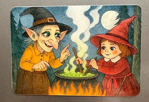 Magnet de frigider „Mica vrăjitoare învață să gătească”