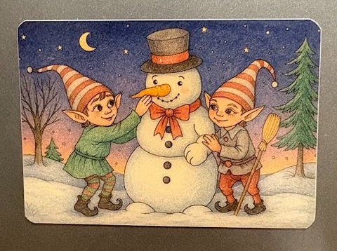 Magnet de frigider „Spiridușii construiesc un om de zăpadă”