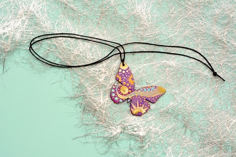 Pandantiv fluture, pictat manual, unicat