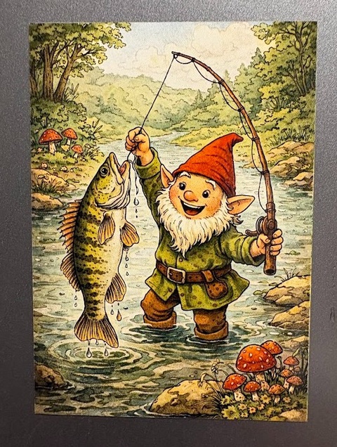Magnet de frigider „Piticul prinde șalău în pârâu”