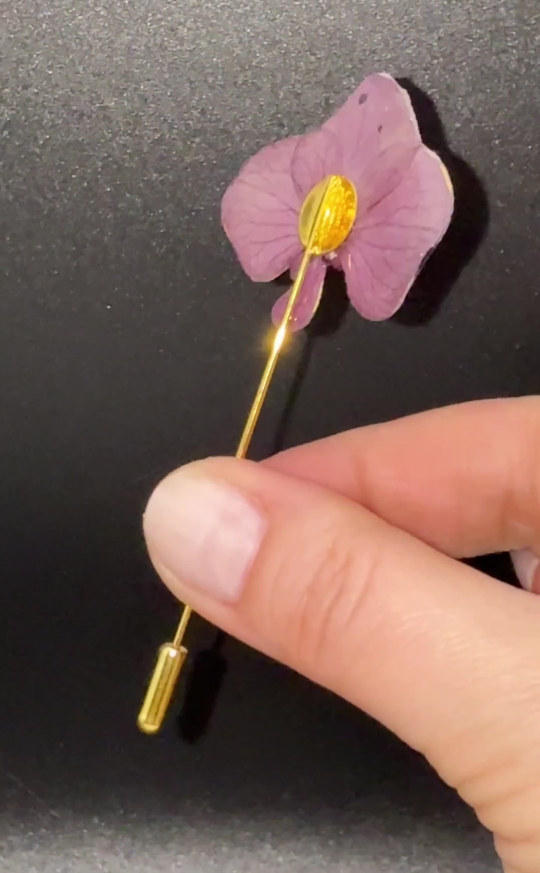 - Material: rasina, floare naturala de hortensie, ac bosa metal