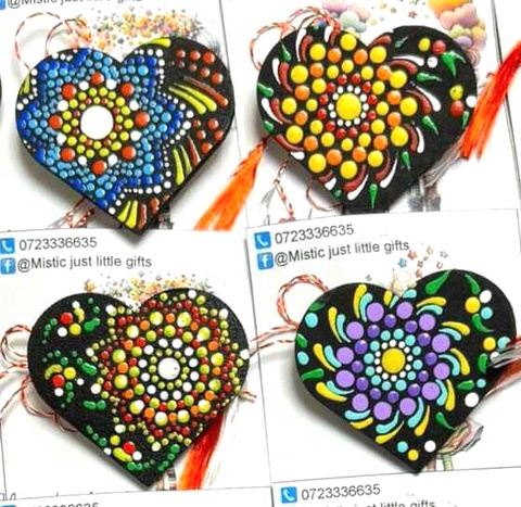 - Material: lemn, ac de brosa, pictura acrilica, snur cerat sau de piele