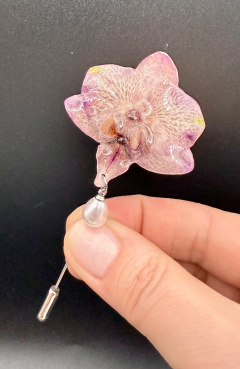 - Material: rasina, ac brosa metal, orhidee naturala, perla