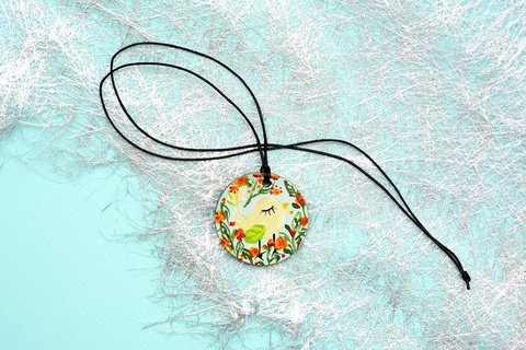 - Material: baza lemn, culori acrilice, șnur bumbac
