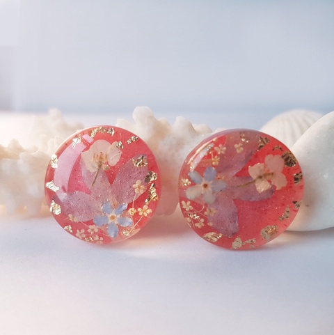 rasina epoxidica, flori naturale uscate, componente metalice aurii