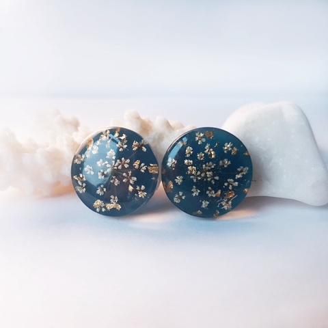 rasina epoxidica, flori naturale uscate, componente metalice aurii