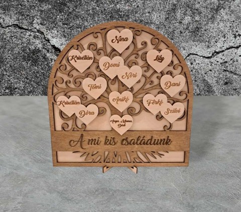 Un panou cu arborele genealogic poate fi un accesoriu elegant și unic pentru casa ta. Designul său elegant și materialele durabile garantează că această decorațiune va rămâne frumoasă și intactă mulți ani de acum înainte. Poți marca numele celor dragi pe ramurile arborelui genealogic, făcând această decorațiune cu adevărat personală. Astfel, panoul nu este doar un obiect decorativ, ci și o moștenire de familie valoroasă. 30×30 cm (max. 9 inimi, inimile duble se consideră ca 1 inimă) 40×40 cm (max. 13 inimi, inimile duble se consideră ca 1 inimă)