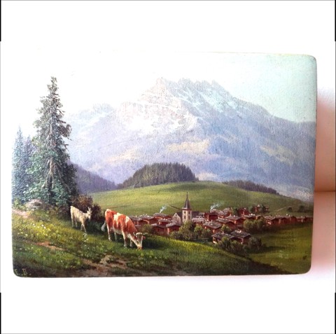 Cutie mică din lemn pictată cu un peisaj frumos