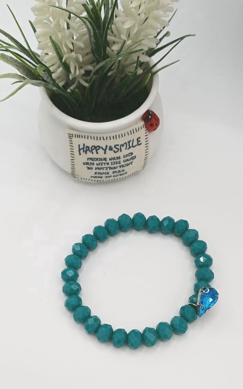 Brățară din mărgele de sticlă fațetată, în nuanțe intense de turcoaz, cu un luciu delicat.