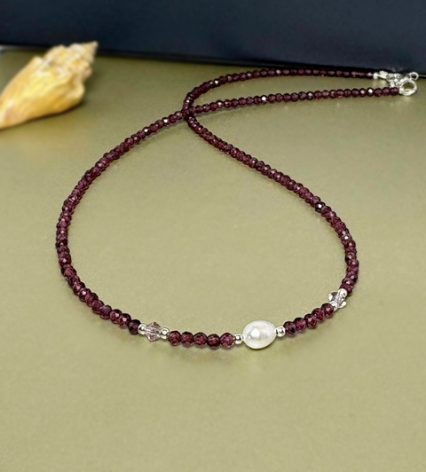 Colier granat, perla cultura si cristale Preciosa