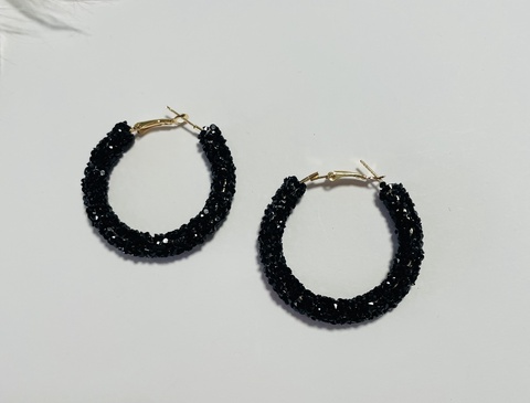 Cercei tip cerc cu pietricele negre – eleganță modernă