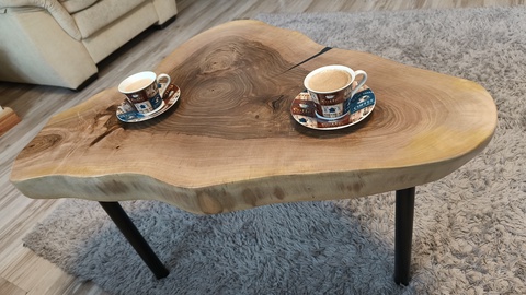 - Material/Conținut lemn masiv de nuc, picioare metalice, rasina epoxidica