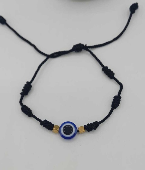 Brățară delicată realizată pe șnur textil negru, ajustabil, cu noduri decorative lucrate manual.