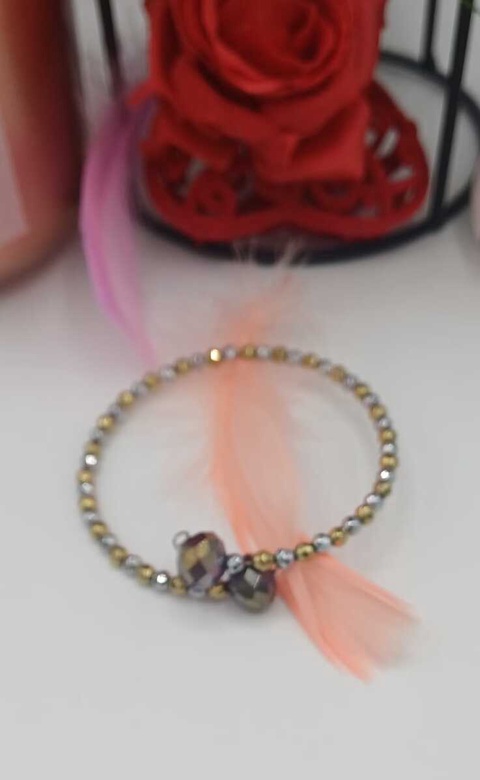Brățară fină și delicată, realizată din mărgele fațetate în nuanțe calde de auriu și argintiu