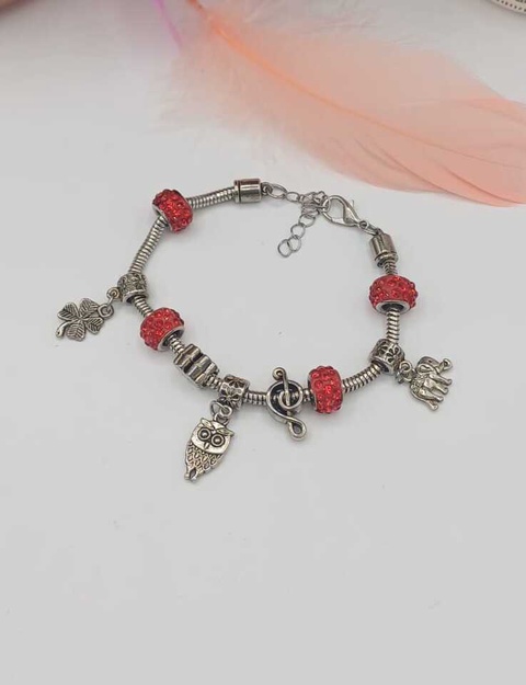 Brățară tip charm, cu influență Pandora-style, realizată din metal argintiu (aliaj)