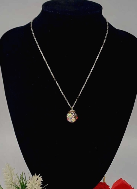 Colier cu glob acrilic cu sclipici in interior.