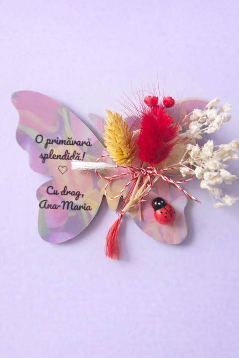- Material: lemn, magnet, vinil, flori uscate, fir martisor, acril
