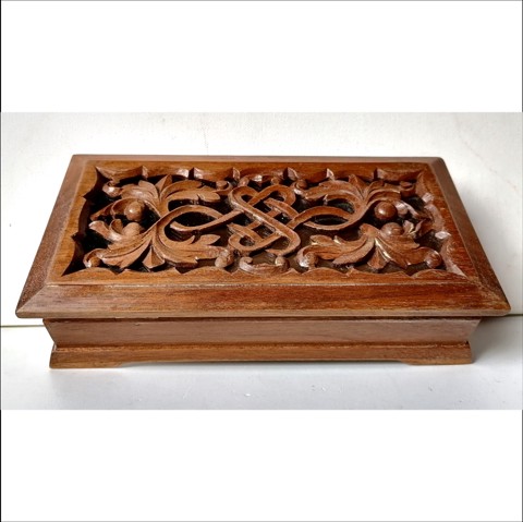 Cutie pentru bijuterii în formă de cufăr celtic, sculptată cu împletituri infinite