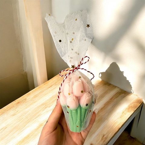 Mărțișor buchet de lalele - lumânare din ceară de soia