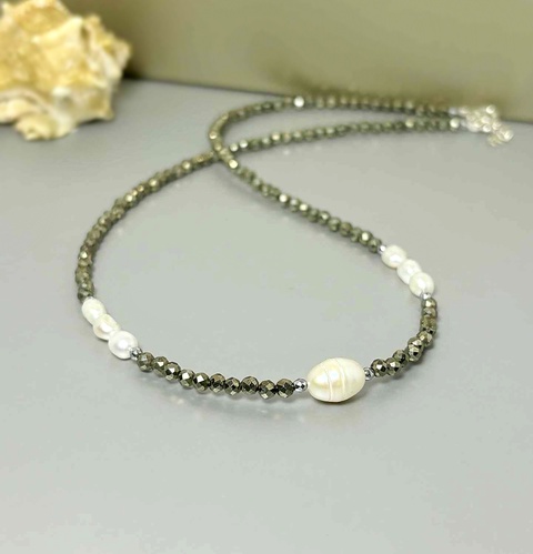 Colier pirita fatetata si perle