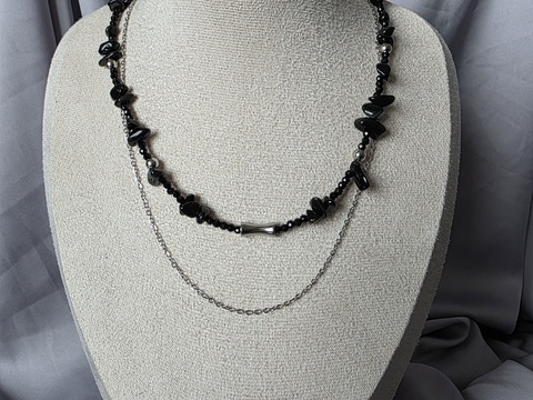 Colier din margele negre si oțel inoxidabil