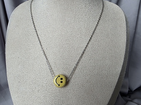 Colier cu lanț din oțel inoxidabil și pandantiv ceramică smile