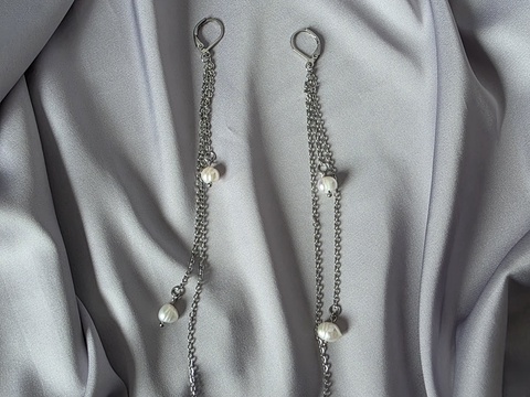 Cercei lungi din oțel inoxidabil și perle de cultură