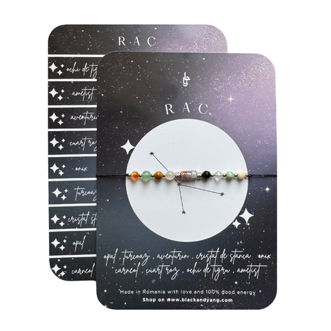 Bratara reglabila argintie Zodia Rac din 9 cristale naturale si otel inoxidabil