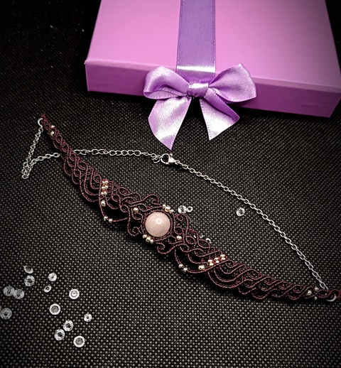 Choker Victorian micromacrame cu cuart roz