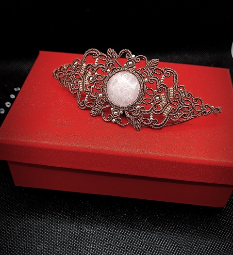 Brățară Amuleta Micromacrame Cristal Cuart Roz