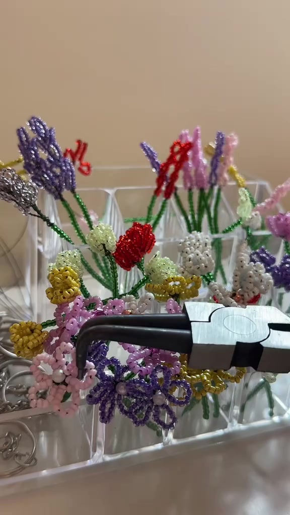 Breloc handmade – Buchet cu flori din mărgele, Mărțișor handmade personalizat