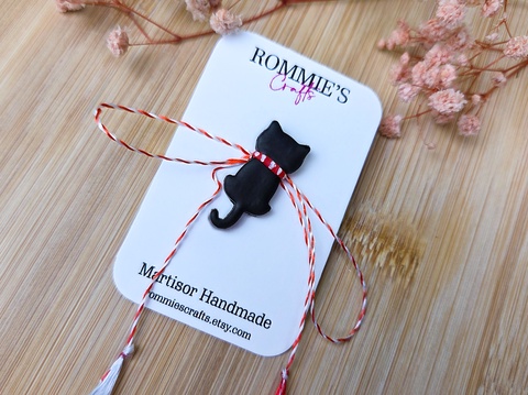 Mărțișor Broșă Pisică Neagră – Lucrat Manual din Lut Polimeric, 2.7x1.2 cm