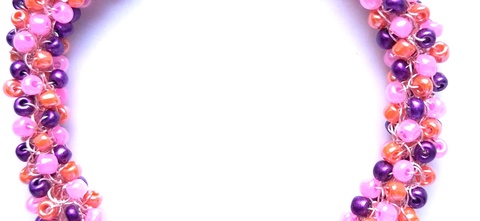 Bratara roz cu margele de sticla roz, violet, portocaliu