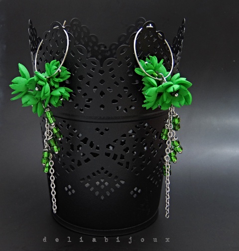 Cercei handmade, lungi cu flori verzi (cod1390)